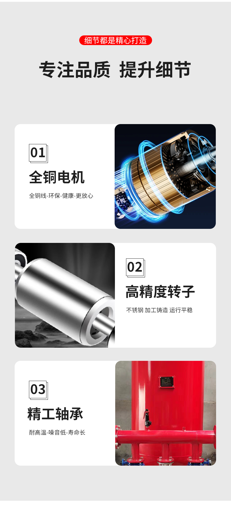 控制系統(tǒng):宛如設(shè)備的 “智慧大腦”,對水泵的運(yùn)行實(shí)施全方位監(jiān)控與精準(zhǔn)控制。它不僅能夠?qū)崿F(xiàn)自動切換,在一臺水泵出現(xiàn)故障時,迅速啟動備用泵,保障供水不間斷;還能進(jìn)行調(diào)壓調(diào)頻,根據(jù)消防系統(tǒng)的實(shí)際壓力需求,靈活調(diào)整水泵的運(yùn)行頻率,以達(dá)到節(jié)能高效的目的;同時,具備強(qiáng)大的故障報警功能,一旦設(shè)備出現(xiàn)異常,能及時發(fā)出警報,提醒維護(hù)人員進(jìn)行檢修。