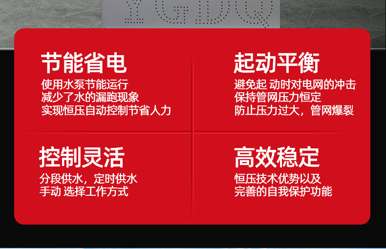 變頻控制柜內(nèi)在質(zhì)量?jī)?yōu)良,外形美觀耐用,安裝操作方便,是各類水泵安全可靠的伴侶。